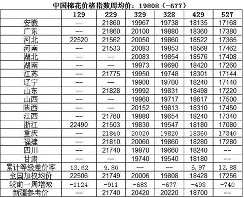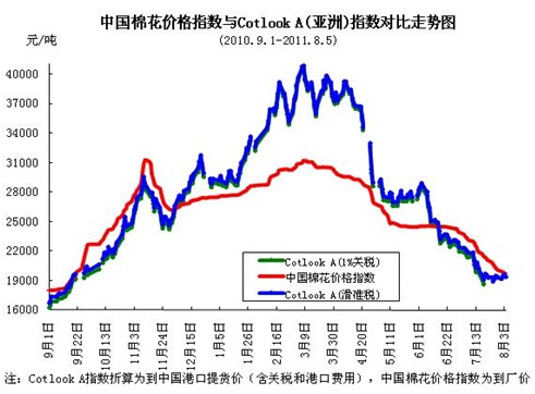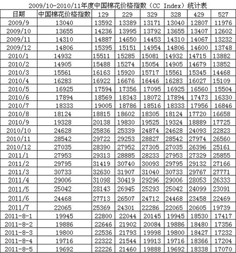 Last week (8.01-8.05) domestic cotton spot price level 3 below national ShouChu price 19800 yuan/ton, because enterprise hold down prices, cotton yarn purchasing cotton yarn price continue to fall, enterprise production effects of restricting output increases gradually, and high temperature, the whole market off-season continued weakness. Cotton procurement not much, still in business for sales have to continue to cuts, some firms have started to repair the machine, ready for New Year's takeover. According to our latest survey shows that the New Year is expected to yield 7.25 million tons, with 16% caliber. This week China cotton price index (CC Index328) week average 19808 yuan/ton, a QianZhou fell to 677 yuan; Level 229 21749 yuan/ton, fall 911 yuan; Level 527 17256 yuan/ton, fall 740 yuan. Last week the electronic set peatlands decrease a storehouse, center of gravity continue to dip.
