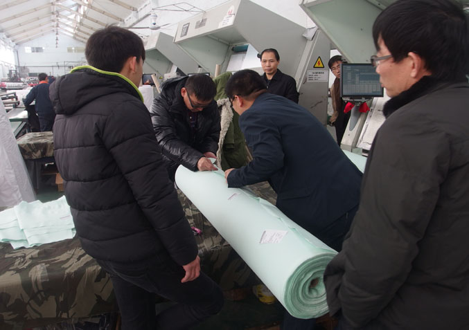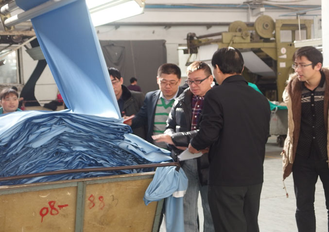 November 28, 2013, Target company Mr. Wong talk about detail cooperations with vice-president of fabric and vice-president of production. The minister of sales Chang Yanjie, division chief of grey cloth Quan Aiguo and division chief of quality inspection had accompanied by attending the meeting. After that, accompanied by Mr. Zhu, Manager Wong visited our production workshop, labs and air jet loom factory early or later.