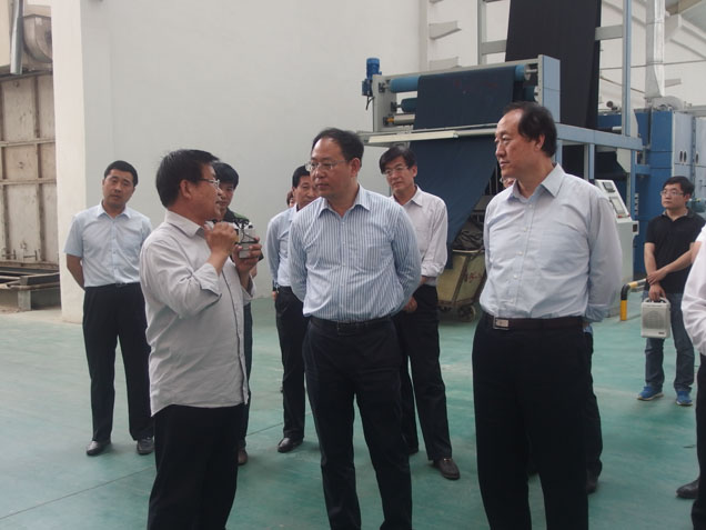 In May 18, 2014, the Shanxi provincial government deputy secretary general line to inspect the work of china. The Shanxi provincial government deputy secretary general line first visited the sample exhibition hall of our company, understand the development situation, my company's product planning. Accompanied by our company Jing of General Manager Deputy Secretary General visited the production workshop, understanding. After that, the digital printing project in our company in the construction of the plant, Deng general manager introduced the basic situation of our three project to leaders, follow the spirit of "the party's eighteen big economic reform is the key to deepen the reform of comprehensive, core is dealing with a good relationship between government and market, to make the market play a decisive role and better play the role of government in the allocation of resources". Finally, the leaders visited our company cowboy project site.